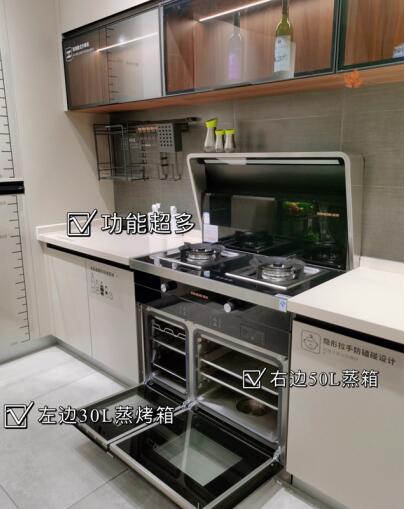 这样一来,我可以在灶台上做红烧肉、番茄炒蛋、辣子鸡的时候,底下的蒸箱、蒸烤箱也在同步工作着,30分钟,做完一桌菜绰绰有余~