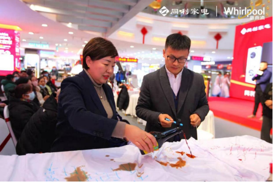 巡展产品展示区,写满焦虑与烦恼、涂抹了番茄酱、酱油等特殊污渍的白色短袖,被扔进了惠而浦帝王H精英版洗衣机清洗,洗涤程序结束后T恤洁白如新,让人大呼神奇的奥秘就在于惠而浦帝王H精英版洗衣机配备的“顽渍净”程序,针对不同污渍对温度的敏感度不同原理,设定4段水温洗涤模式,一次性有效去除25*种顽固污渍。持有蓝标认证的FreshCare+干衣机在现场以贴壁烘技术和双层毛屑收集器也收到如潮好评,一件沾满毛屑的褶皱西装扔进惠而浦FreshCare+系列干衣机,烘干程序结束后,毛屑消失无踪,西装挺阔如新,是值得广大消费者拥有的衣物护理专家。