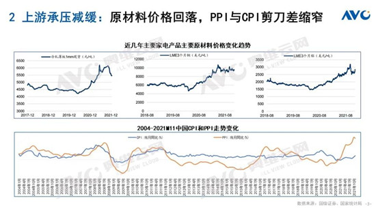 2021年经历了原材料价格的不断上涨,同时消费意愿的相对疲软也使得2021年PPI与CPI剪刀差创下了历史新高。依据目前上游主要原材料价格变化情况以及历史规律来看,我们预测2022年上半年原材料价格会逐渐回落,同时剪刀差会在6月前后逐步恢复常态。