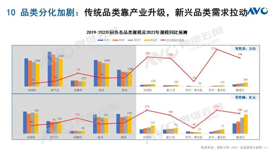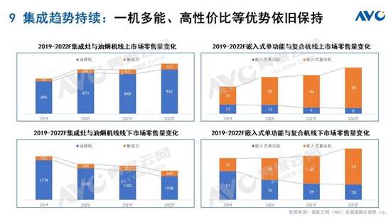 集成产品短期内一机多能、高性价比等优势依旧保持。据奥维云网(AVC)推总数据显示,集成灶对比油烟机、嵌入式复合机对比单功能的优势将进一步放大,需求端存在着进一步替换关系。