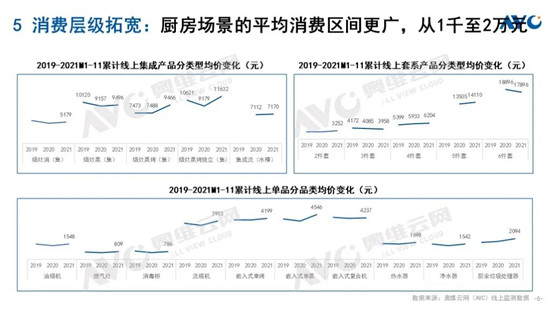 如果用平均消费区间来划分中国厨电市场的消费层级,那厨房场景下从近千元到两万元涵盖了更广的人群。以奥维云网(AVC)线上监测数据为例,我们大致划分集成产品类、套系与分体3大类来看,集成产品下限高、上限不高,分体产品的上限与下限都很高,套系产品则是下限不高、上限很高。以上,一定程度上可作为品类间定位供大家参考。