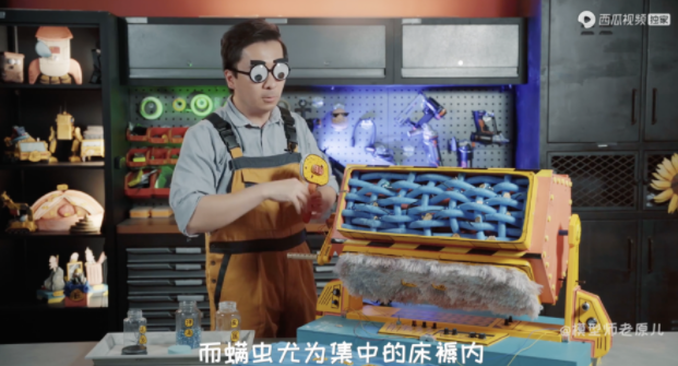 一开始,戴森选用了有726万粉丝的西瓜视频头部达人“模型师老原儿”拉动话题热度。“模型师老原儿”为其打造了「灰尘你别跑」的模型视频,以“除尘四不”为切入点,讲述灰尘的危害以及高效除尘的方法。打破消费者以往清洁误区,强化戴森“灰尘专家”的形象。