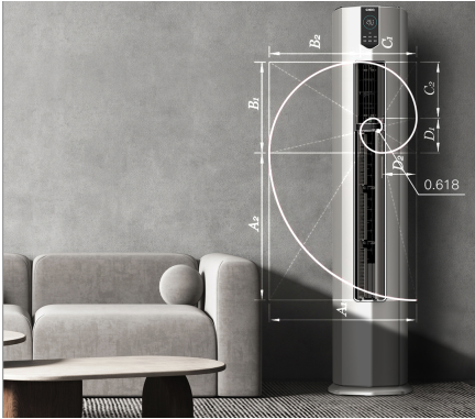 首先是方圆结合的外机造型,钛金灰/皓雪白的高级色彩搭配钻石形底座,摆在家中更像是一座艺术品。其次长虹客餐厅共享空调采用的黄金比例出风口,根据中国家庭客厅布局和活动习惯,重新定义柜机风口上下比例,蕴藏人体工程学理念,近距离不直吹,远距离强劲送风。