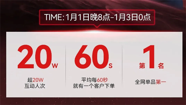 截止1月1日20点—1月3日0点,亿田S8A蒸烤独立集成灶凭借强大的高端爆品势能持续发力,首发直播单场互动人次超20万+!平均每60秒就有一个客户下单,以爆发式的业绩增长一举夺得京东、天猫双平台厨卫大电/集成灶主品类C位。再次锁定元旦期间全网第1单品!