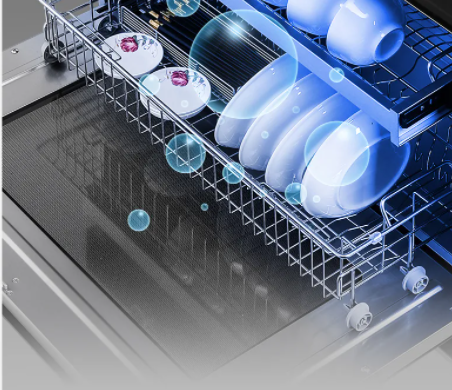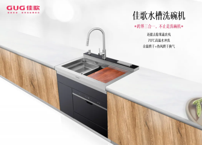 佳歌水槽洗碗机集水槽、果蔬清洗机、洗碗机为一体,既能洗瓜果蔬菜鱼虾蟹,又能洁净碗盘。旋风接力水流喷射系统强势洁净去泥沙,70℃高温水有效溶解去油污!
