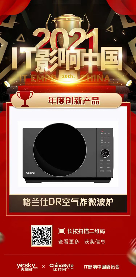 获奖的DR空气炸微波炉是国民品牌格兰仕立足其航天微波炉等科技成果、以“宇宙厨房”为主打概念所推出的太空黑科技爆品,一台机器即可解决三餐烹饪。