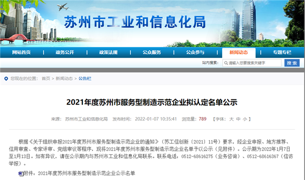 近日,苏州市工业和信息化局在其官方网站公布了“2021年度苏州市服务型制造示范企业名单”,共有36家企业获此殊荣。来自昆山市的SAKURA樱花凭借多年来在厨卫家电领域的优质服务,获得了市场口碑、业内专家和政府部门的一致认可,成功跻身服务型制造示范企业大名单。