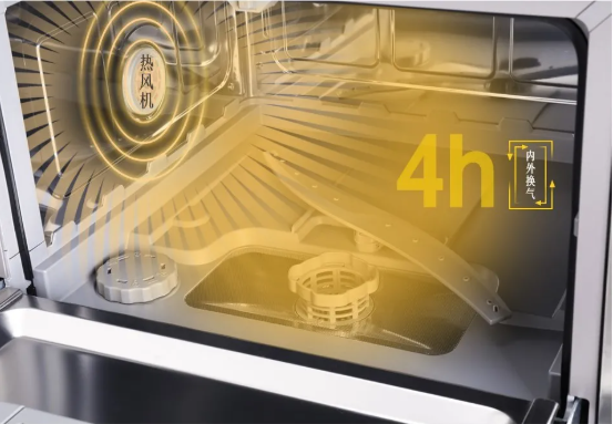 旋风接力水流喷射系统从底部喷射360度无死角旋喷水流,70℃高温水清洗碗盘,有效溶解顽固油污强势去油渍的同时还能杀菌消毒。