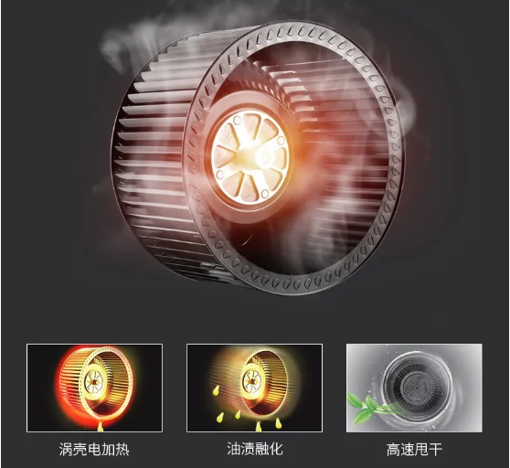 针对烟道内部清洁问题,佳歌集成灶搭载一键电加热清洁功能。通过加热融化油渍再高速甩干流入集油盒,长期使用过后附着在烟腔内壁的油腻污渍也可以轻松去除,只需定期清理集油盒即可!