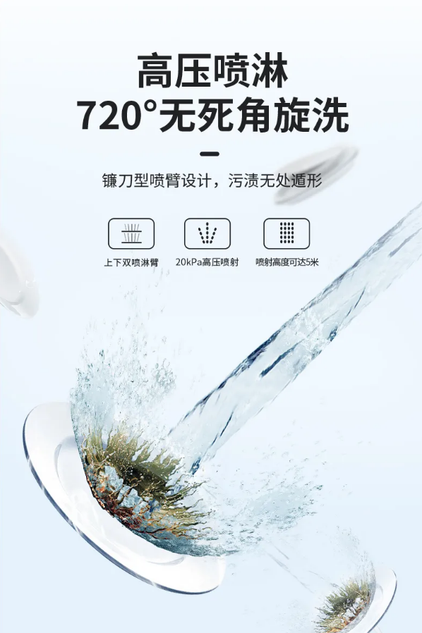 旋转水流强力高压冲刷餐具内外