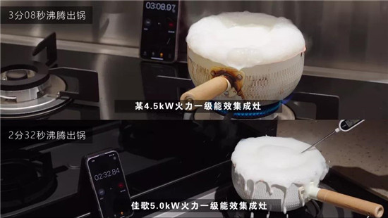 同样煮汤圆,佳歌集成灶相比4.5kW火力一级能效集成灶加热速度可以提升20%以上!