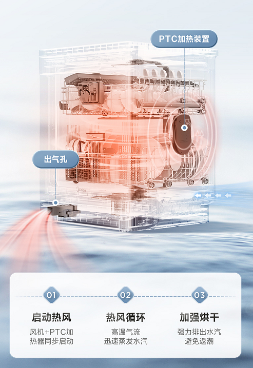 双驱热风烘干,碗碟净爽更安心