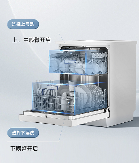 日常生活,如果碗碟少,会觉得使用洗碗机浪费水。针对用户这一顾虑,美的骄阳洗碗机RX600W创新设计1/2分层洗,即便是一人量也能够节能洗,清洁同样给力,还能轻松节约水电。15套的超大容量让多人聚餐的餐具也能一次洗净,通过优化设计,提升腔内空间利用率,轻松搞定清洗任务。