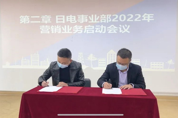长虹日电事业部陈总与公司各级管理人员签订2022年年度经营目标责任书,进一步明确各部门、个人员职责任务,做到有权可用、有责可查。