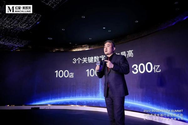会上,红星美凯龙家居集团执行总裁兼大营运中心总经理朱家桂宣布,要在两年内打造100家超过1万平方米的智能电器生活馆。这100家顶配的电器馆预计将为合作伙伴创造300亿元的销售额。