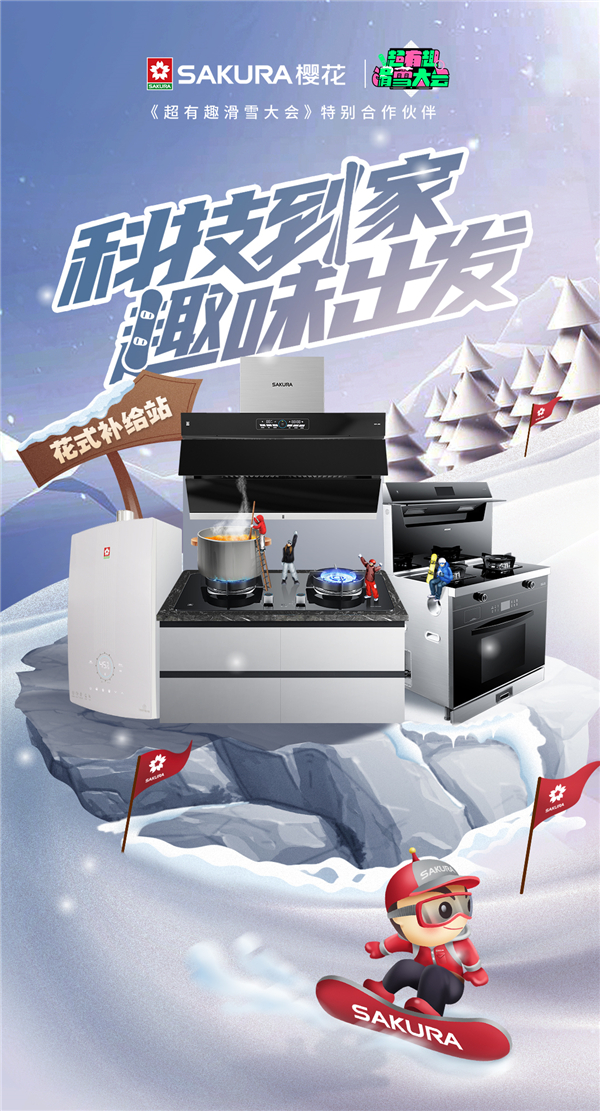 而携手《超有趣滑雪大会》的SAKURA樱花,作为厨卫领域的“科技担当”,更贴身打造了“科技到家趣味出发”的主题,化身贴心厨卫官,为这个活力四射的冰雪世界注入智慧科技守护,保障生活大后方,诠释着品牌智慧科技与国民生活品质共进的初心。