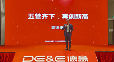 德意集团董事长高德康对电器2022营销工作作了“五管齐下”的重要工作指引:德意将继续坚持中高端品牌定位,以新品作为营销利器和突破口,集中优势资源招商拓店、主动出击、深耕渠道,两手并抓零售和工程业务,扎实作为,再创新高,打赢2022这场新的战役!