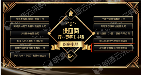 德意智家作为国内厨卫电器和定制家居行业一线生产商,本次上榜“供应商行业竞争力十强(厨房电器&全屋定制家具)”,是一直以来坚守品质的必然结果。公司自成立以来,坚持“为了帮助人们实现更高品质、更加美好生活”的企业使命,以原创设计和领先科技作为双核驱动,全力将公司打造成为集厨卫电器、全屋定制、智能家居为一体的并拥有核心价值和竞争力的全球一流大家居企业。