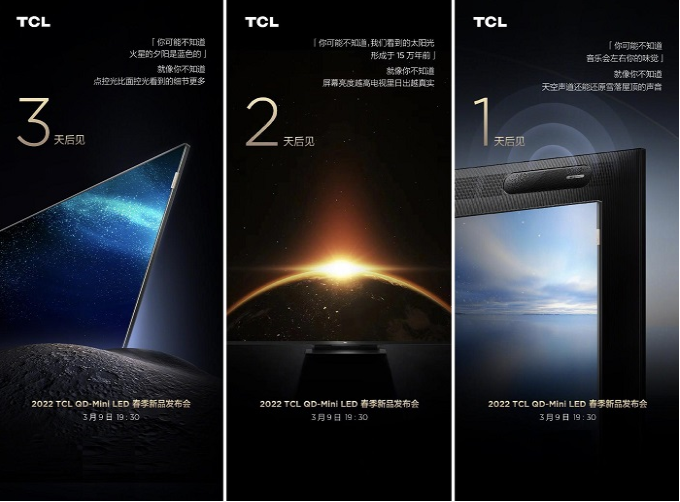 无论是被誉为画质天花板的第三代QD-Mini LED显示技术,还是全球最大的消费级QD-Mini LED电视,此次TCL将发布3款QD-Mini LED阵营产品,再度深耕Mini LED领域,表明其坚持Mini LED战略不动摇。时至今日,2022 TCL QD-Mini LED春季新品发布会已进入倒计时,全新的观影体验即将而来!