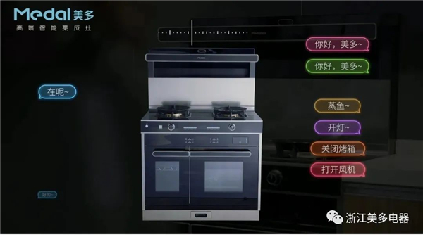 美多语音分蒸烤集成灶的亮点还在于搭载人工智能AI语音技术,与国内顶尖的语音智能企业——科大讯飞合作,解放懒人双手。即使是家里老人也能够轻松操作,还能听懂26种方言,一声“你好,美多”,就能开启全语音的AI智能新厨界。