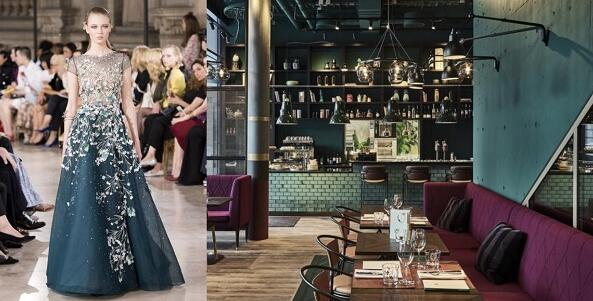 还有瑞典著名设计师Stylt Trampoli设计的瑞士度假酒店The Hide用绿色瓷砖的底色来平衡温暖舒适与复杂精致之间的关系;全球一线高定品牌Georges Hobeika以墨绿衬托模特的高贵典雅与神秘感。