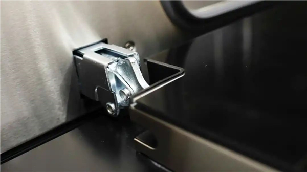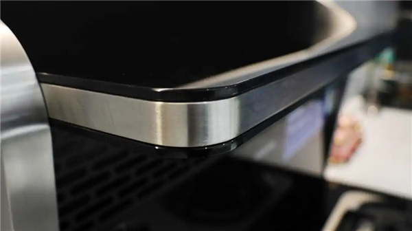 蒸烤箱的门体铰链采用耐高温的不锈钢材料,厚实的用料足以保证开关箱门的稳定性。拉门时的阻尼感恰到好处,且支持任意角度悬停,方便在美食出炉时,先打开一条小缝排走里面的蒸汽和热量,避免高温直扑面部导致烫伤。