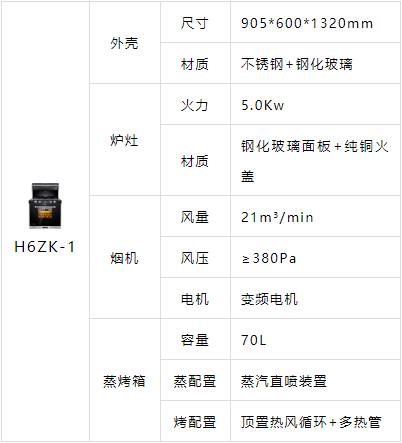 H6ZK-1的抽油烟机使用了直流变频电机和直径300mm风轮配置,比一般集成灶所用的定频电机或是260-280mm直径风量要豪华不少,官方称最大风量可达21m3/min,吸力强劲,尤其适合顿顿吃辣的重油烟厨房。