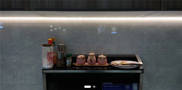 烟机顶部的置物台有着优秀的置物能力,实测可以一次放入多个大型调味瓶和家里常用的圆碟,炒菜调味的时候即拿即用,非常方便。如果家里厨房空间比较紧张,更是可以考虑购买这类置物架较宽的集成灶。