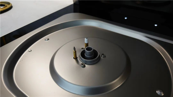 取走火盖,可以看到燃气灶的点火针和包裹着白色陶瓷的熄火保护装置,熄火保护装置可在燃气灶意外熄火时立即切断中心气道的燃气供应,防止燃气泄露,引发安全事故。