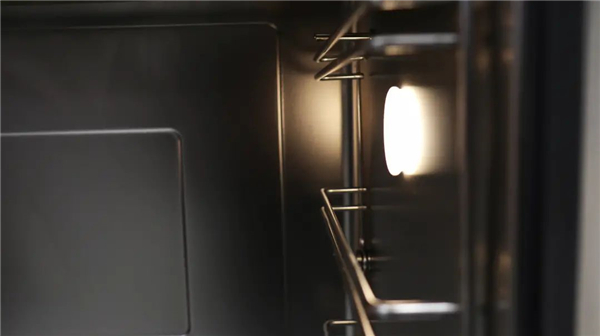 蒸烤箱的右侧有一盏暖光小圆灯,蒸烤时可以借助灯光随时观察食物生熟状态,调整烹饪时间,增加烹饪成功率。