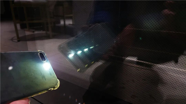 蒸烤箱门体的玻璃层数决定其隔热效果的优劣,向玻璃门投射光源,蒸烤箱出现了3个反射光点,证明H6ZK-1使用了3层玻璃面板,是目前市面上最优的配置。