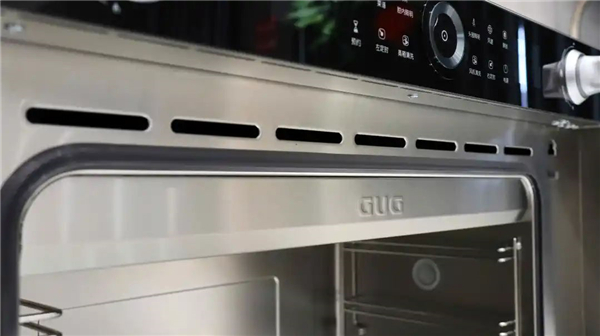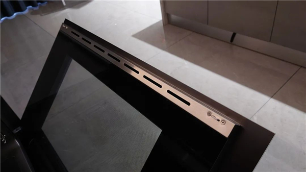 门板散热设计也值得一提,蒸烤食物时,室外冷空气会从门板的底部流入,冷却烤箱门后,再经过门板顶部的散热孔排向风道,进一步优化了玻璃门的隔热效果,并且延长机器的使用寿命。