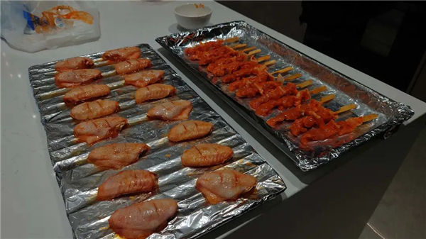 测试完玉米和小笼包后,我们又准备了鸡翅和肉串,检验H6ZK-1的烘烤性能。