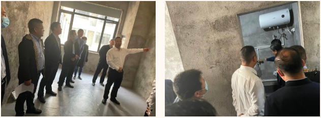 嵊州市委常委等领导一行在袁董的陪同下,查看了由政府扶持的佳歌集中隔离点的整体布局和改造情况,且实地检查了房间、卫生间等改造进度,并给出了指导意见。
