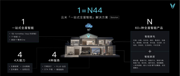 基于完整的全屋产品套系,云米通过5G、AI、IoT等技术融合,在本次发布会上提出更为细化的全屋智能解决方案——“1=N44”。其中,1代表“「一站式全屋智能」解决方案”;N指的是云米目前上市的共计60多种大类的智能“全家桶”;44则是拥有4大能力和4大服务的云米HomeMap,借助全新发布的Alpha X毫⽶波超视感知雷达,让用户更加轻松自如地掌握家的各种信息状况,助力全屋智能设备更⾼效、更主动地为用户服务。