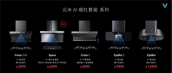 除了功能和颜值兼备的Space云米AI智目油烟机外,云米更有包括Cross 3、EyeBot等在内的全系列烟灶产品,满足不同用户需求,全面解决厨房油烟问题。