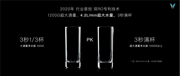 传统净水器普遍存在出水量太小的通病,对此,云米在2020年率先推出双RO专利技术,以1200G超大通量,4.2L/min超大水量,实现3秒满杯,解决出水量小的难题。2022年,云米净水器在通量上又⼀次实现飞跃性的升级,再次突破流速天花板。