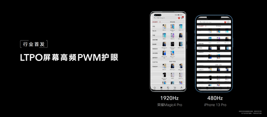屏幕是影响手机体验的最核心原件,荣耀以消费者需求为出发点,经过科技攻坚,解决了LTPO智能刷新率调节和高频调光共存的行业痛点,在荣耀Magic4系列上业内首发LTPO屏幕高频PWM调光护眼屏,为用户带来身临其境的视觉盛宴。
