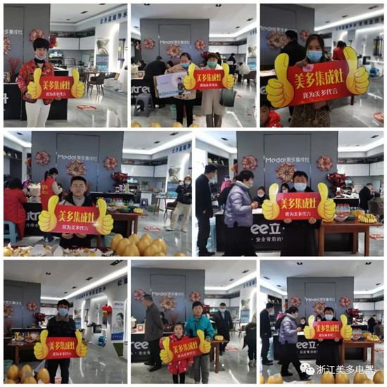 开业活动现场无不透露着喜气,门口摆放的一个个麦穗花篮配上红色的包装,喜庆又醒目,麦穗,象征着丰收与硕果累累。优雅的门店环境,热烈的氛围布场,精心布置的产品陈设,超值的惊喜价格、砸金蛋、抽奖好礼不断……让美多集成灶江苏丰县店显得各外耀眼,众多顾客被美多店内热烈的气氛吸引前来,也有一些“美”粉们特地冲着美多黑科技产品慕名而来,店内可谓是人潮涌动,欢声笑语不断,下单不断,迎来了开门红。