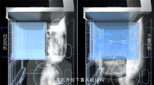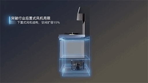亿田下置式风机结构,采用行业颠覆式的创新技术,将原本传统油烟机置于头部、一般集成灶置于背部的风机下移至底部,从而最大程度上拉远了“人”与“噪音源”的距离,降低了噪音污染对于厨房、人体健康的危害;同时,通过风机位置的优化,亿田以流体力学黄金理念为出发,在实现腔体空间扩容15%的同时,结构增压,有限实现风机噪音骤降。