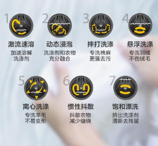 通过DD直驱变频电机精准控制洗涤力度和速度,帝王H精英版洗衣机针对不同衣物材质能实现Magic 7种不同水流模式,控制衣物翻滚角度、路径、时间,模仿手洗过程,洁净洗衣不伤衣。就如娇贵的羊毛织物,帝王H精英版洗衣机采用离心洗涤模式,以90转/分的转速洗涤和烘干羊毛衣物,保证衣物在洗涤与烘干过程中紧贴在筒壁上,不会因为反复的翻转和拉扯导致衣物的变形。
