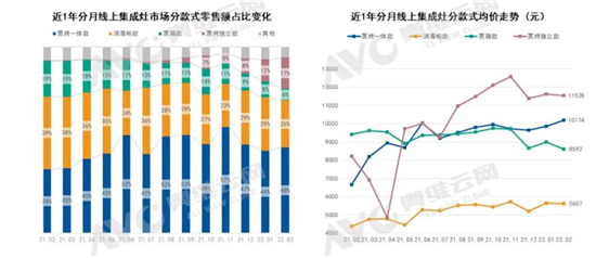不过需要注意的是,虽然蒸烤一体和蒸烤独立款式集成灶有取代消毒柜款、蒸箱款的势头,消毒柜款和蒸箱款的零售额占比也呈下降态势,但这并不代表消毒柜款和蒸箱款的会被完全取代,市场和消费者依旧对这类产品拥有一定的需求。