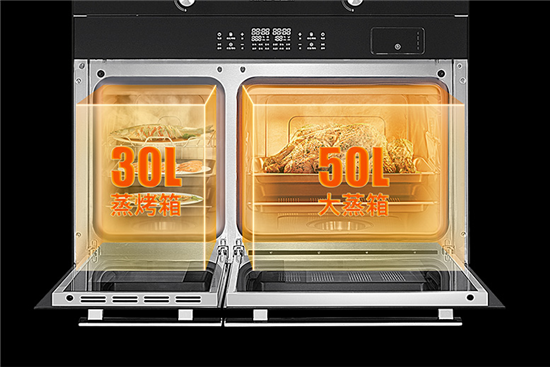 金帝X900KX2右腔的消毒柜则能够实现杀菌、烘干、保洁多项功能,能够完全胜任日常生活中餐具的消毒和储存,无需担心厨房没有空间存储餐具以及餐具久放出现细菌、病毒污染的情况。值得一提的是,金帝X900KX2左腔的蒸烤一体箱和右腔的消毒柜采用独立炒作界面,可以实现一边蒸烤一边消毒两种模式同时进行互不干扰。