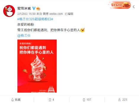 “期待见证你们的意气‘蜂花’”、“遇到把你捧在手心里的人”、“上得考场,下得厨房”等俏皮文案是3月28日蜂花、蜜雪冰城、得力文具等多家具有行业代表性的国货品牌为格兰仕西红柿粉丝送上的生日祝福,品牌类别涉及吃、穿、用各大日常消费类目,不少网友表示:“这是什么梦幻联动”。