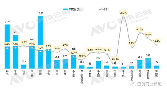 根据奥维云网推总数据,2021年中国空调零售规模1527亿元,家用机工程市场和家用中央空调评估也有接近1000亿市场容量。由此可见,空调行业已经是中国家电市场规模最大的行业,也是国内家电市场当之无愧的品类一哥。此外,2000亿大市场的优质赛道培育出格力、美的、海尔、海信、TCL、奥克斯、长虹等主流品牌和明星企业。