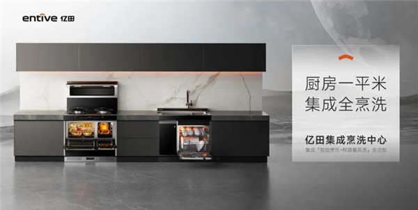正如亿田官宣集成烹洗中心时的描述:中国大部分厨房空间为4-8平方米,这注定绝大多数家庭在烟灶、水槽之外无法获得更多厨电加持,但当下中国家庭对食材更彻底清洗、蒸烤应用、更便捷洗碗等高质量生活方式充满向往,这份向往正与狭闭的厨房空间形成愈来愈激烈的矛盾,这就是亿田创作“1平米集成烹洗中心”的执念由来。