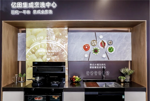 而亿田集成烹洗中心恰好满足了以上两点。它在单品高度集成的基础上,打破传统套系化思维,实现厨房场景全覆盖、体验集成、有机协同。