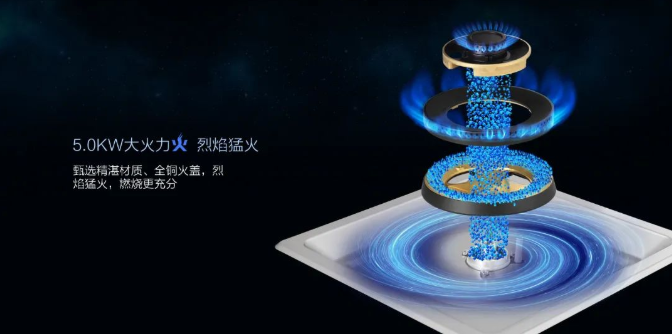 佳歌A6DZK拥有5.0KW大火力燃烧系统,甄选精湛材质、全铜火盖,烈焰猛、火苗旺,燃烧更充分,充分满足中国消费者偏爱的猛火爆炒习惯。