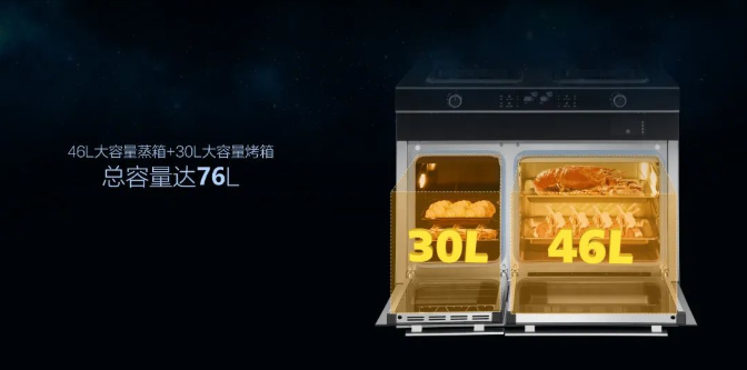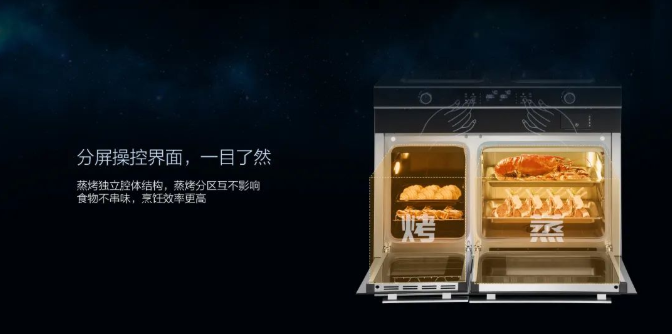 当代消费者饮食多元化,既想要健康的蒸,又垂涎风味的烤。如若单独购买蒸箱与烤箱,厨房空间雪上加霜;如若选择蒸烤一体,蒸的同时不能烤,蒸烤排队,耗时又易令菜冷掉。