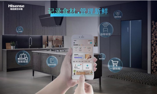 同时,海信真空冰箱休眠二代本着“用户至上”的理念打造了新一代智能食材管理,可以解决远程设定、智能添加、智能组菜、一键购物、智能菜谱、开门报警等核心生活场景中的使用痛点。从在超市即可实现远程操控、一键极冻,到在家通过NFC智能添加食材,记录食材存放时间,都能够通过一部智能手机对冰箱进行掌控,真正让用户进入智慧生活。